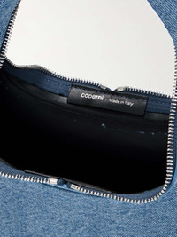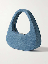 EDITORS'NOTES This version of Coperni’s signature 'Swipe' bag is designed in an elongated baguette shape that gives it a cool '90s feel. Made in Italy from classic mid-blue denim, it has a convenient two-way zip fastening and a comfortable top handle, allowing you to wear it over the shoulder or in the crook of your arm. The compact interior is perfectly sized to fit a cardholder, phone, and hand sanitizer. SIZE & FIT This item’s measurements are: - Handle Drop: 14cm / 5.5in - Depth: 6cm / 2.4in - Height: 9.5cm / 3.7in - Width: 25cm / 9.8in DETAILS & CARE - Mid-blue denim - Top handle - Faux leather lining - Zip fastenings along top - Comes with dust bag - Weighs approximately 1.5lbs/ 0.7kg