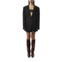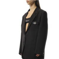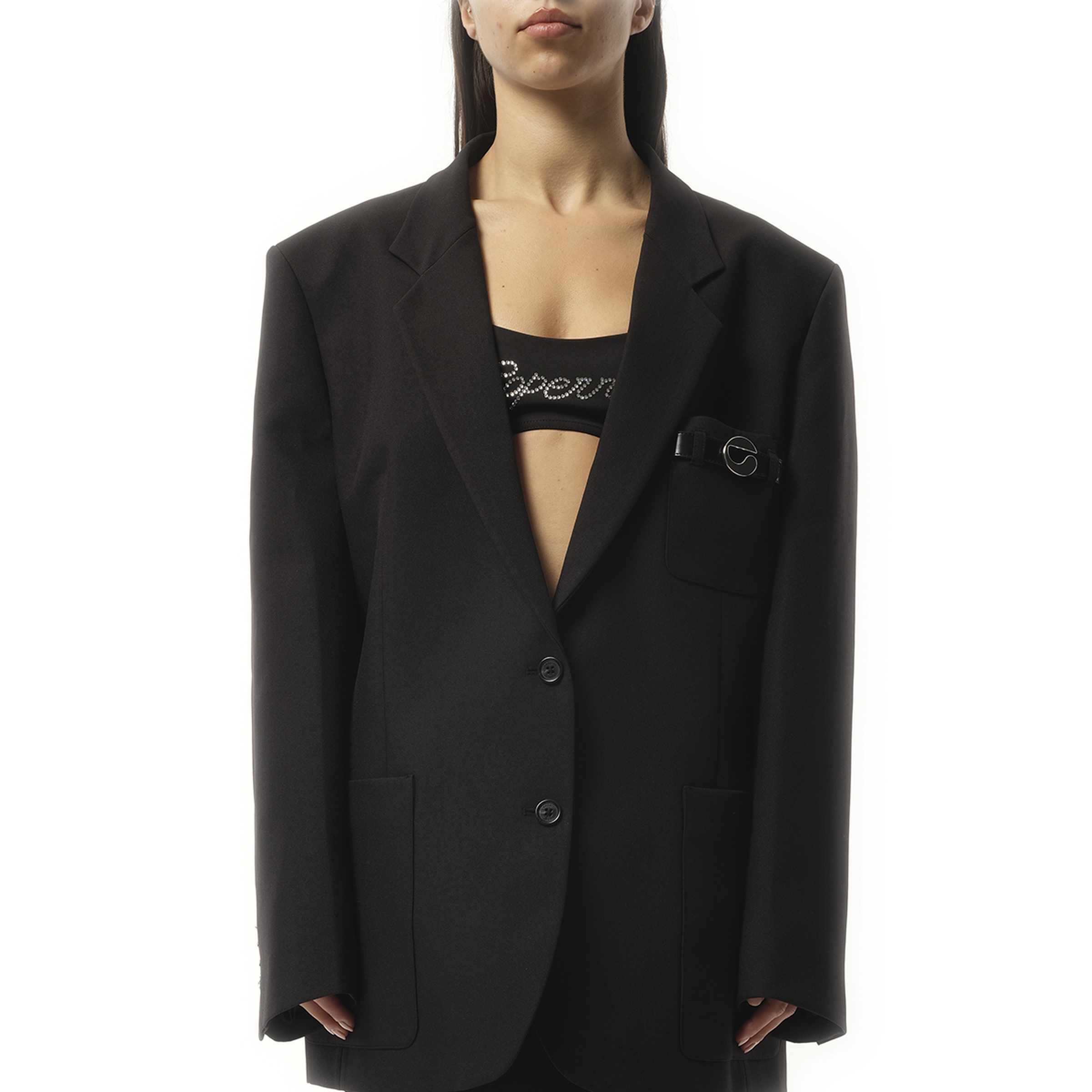 Made with high-quality materials, this jacket features a belted waist and multiple pockets for a tailored and practical look. Perfect for any occasion, this jacket will elevate your wardrobe and keep you looking sharp. - Composition: 100% Recycled Polyester - Front button fastening - Chest patch pocket - Long sleeves - Two side patch pockets - Made in France Model is 175 cm and wears size S SKU: COPV69F3004 BLK