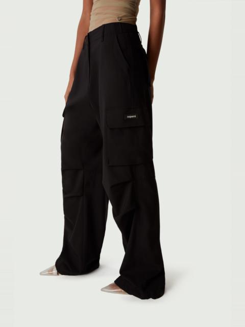 These black cargo pants have a wide leg silhouette and have been fitted with an adjustable waistband, allowing you to wear them high on the waist or low slung for a more casual style. Details Black COPP40106 100% Poly Wool Made in Italy Size and Fit Model is 174 cm / 5.7 ft and wears size 36