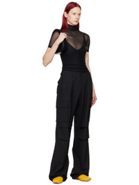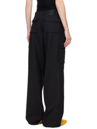 Wide-leg stretch polyester- and virgin wool-blend twill trousers. Rubberized logo patches throughout. · Belt loops · Adjustable button tabs at waistband · Four-pocket styling · Pleats at knees · Concealed bungee-style drawstring at cuffs · Cargo pockets at outseams · Rubberized logo patch at pocket Supplier color: Black