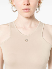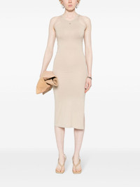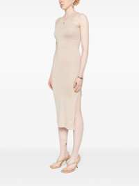 tank top midi dress Highlights - Beige - Cotton blend - Jersey texture - U-neck - Sleeveless - Silver-tone logo plaque - Side slit - Mid-length - Straight hem Imported Composition Modal 50%, Cotton 50% SIZE & FIT Model measurements Height 5 ft 10 in(1.78 m) Bust/Chest 33.07 in(84 cm) Hips 35.82 in(91 cm) Waist 25.98 in(66 cm) FittingInformation Designed for a close fit throughout Made from a midweight non-stretch fabric, this piece offers minimal elasticity when worn This piece fits true to size – take your usual size