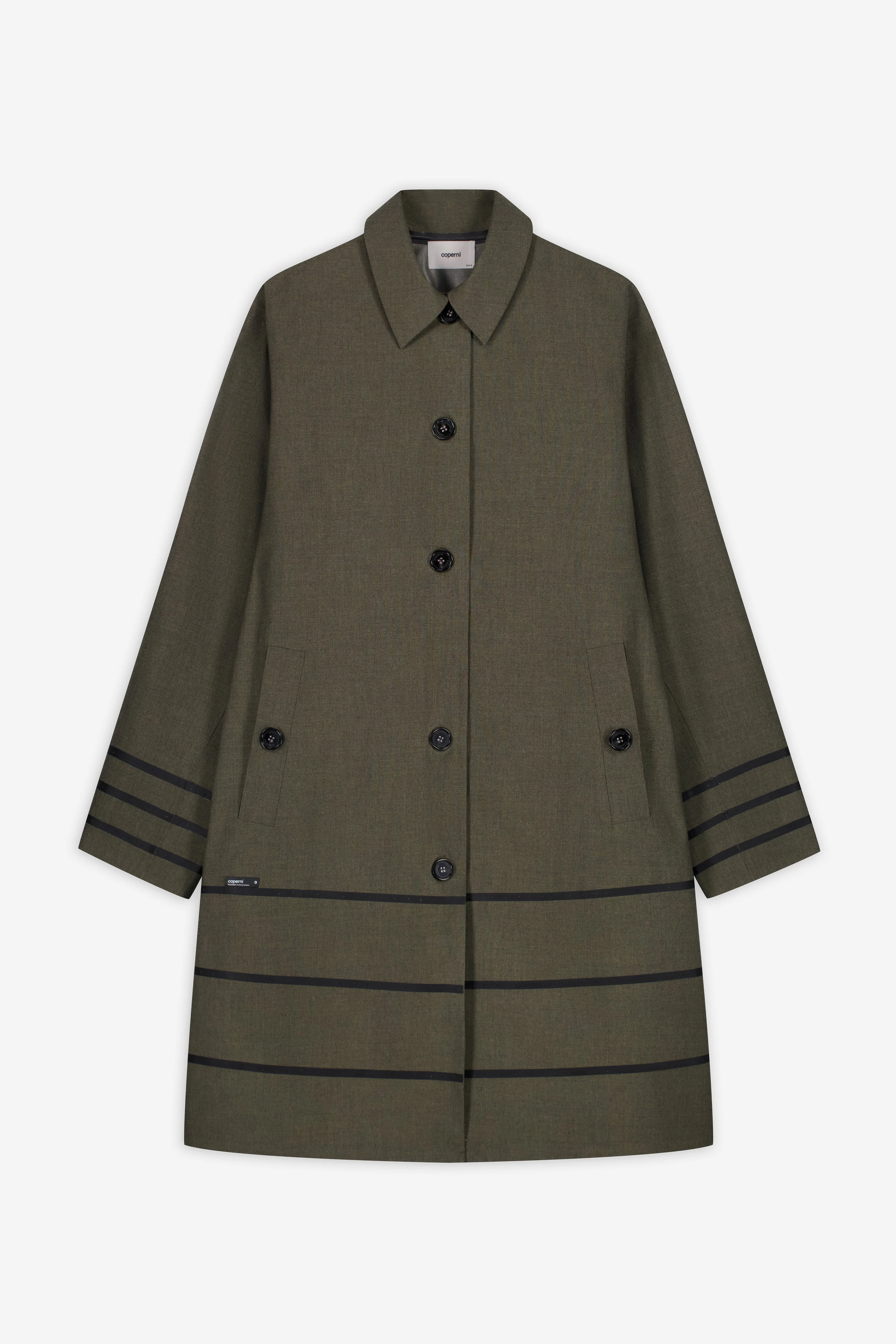 Designed as a longer outer layer, this car coat extends the tailored line into a more continuous form. The straight cut allows the coat to fall naturally through the body, while a clean collar and discreet closure keep the front composed. Minimal paneling and precise finishing give the piece a structure that leads the design. Pre-orders start shipping by 26th January. Details - Composition: Poly Viscose - Made in: China - Sku: COPM34F3061