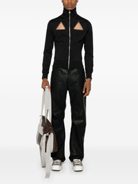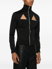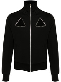 Triangle cut-out track jacket Highlights - Black - Funnel neck - Triangle cut-outs - Silver-tone hardware - Two side zip-fastening pockets - Long sleeves - Ribbed cuffs and hem - Front zip fastening - When buying this unisex item, keep in mind that it is graded in standard men's sizing. Imported Composition Polyester 100% SIZE & FIT Model measurements Height 6 ft 2 in(1.89 m) Bust/Chest 36.22 in(92 cm) Hips 35.82 in(91 cm) Waist 28.54 in(72.5 cm) FittingInformation This unisex piece is designed for a slim fit whether you usually select women's or men's sizes The ribbed hem offers a close, comfortable fit Made from a midweight non-stretch fabric, this piece offers minimal elasticity when worn