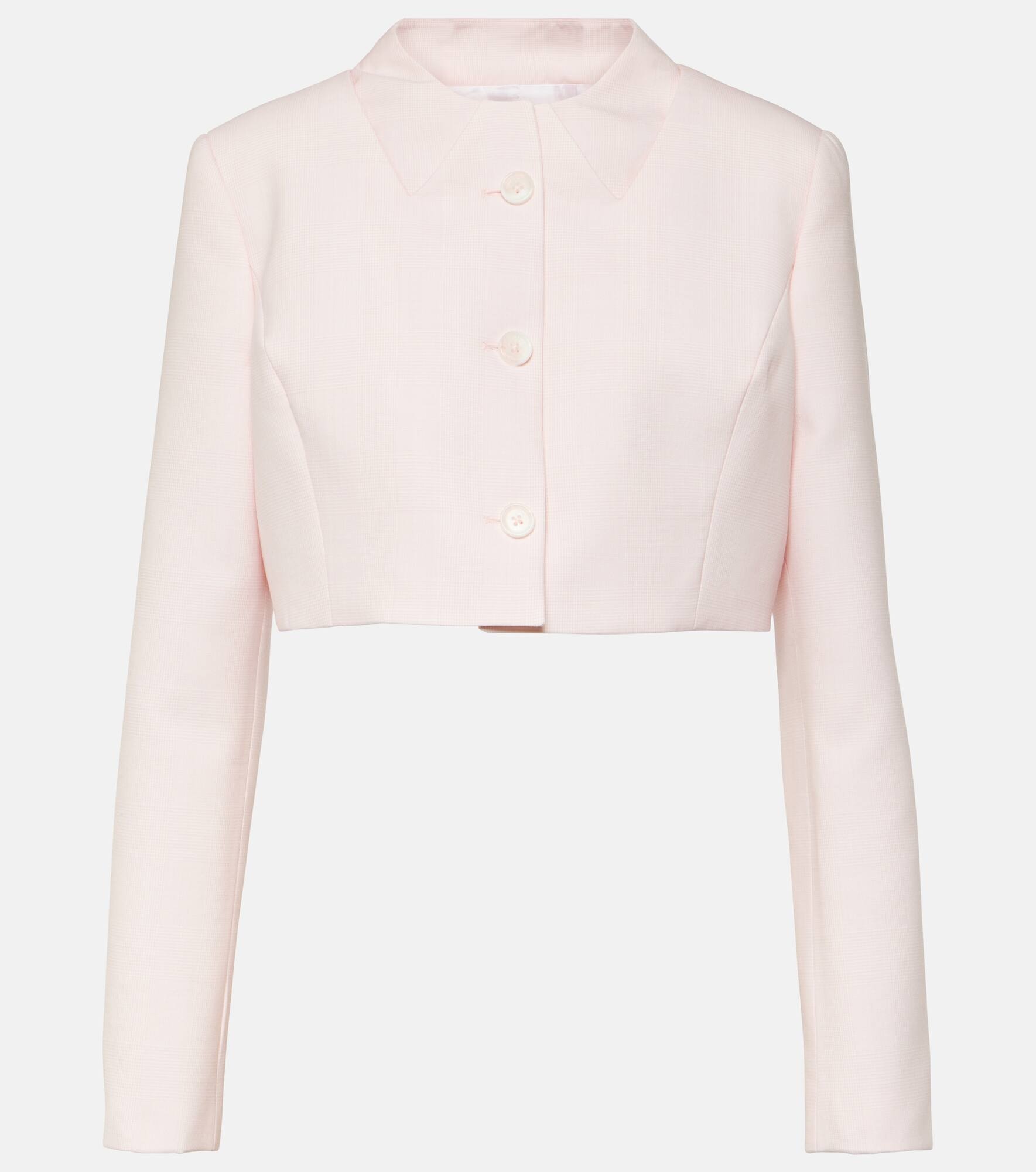 Product Details - Material: 100% virgin wool - Made in Portugal - Designer color name: White/Pink - Care instructions: dry clean - Lining: 100% viscose - Closure: buttoned front - Contains non-textile parts of animal origin - Item number: P00904120 Size & Fit - True to size - Shoulder pad inserts - Straight fit - Non-stretchy fabric - Cropped - The model seen in the picture is 178cm-5'10" and wearing a size FR 36