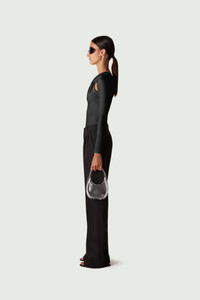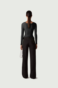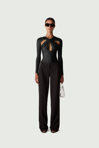Black stretch bodysuit with a twisted cut-out neckline that frames the decolletage with gentle ruching. It's made from a smoothing, figure-shaping material. Details Black COPJS19545C 73% Polyamide 27% Elastane Made in Italy Size and Fit Slim fit Model wears a size XS