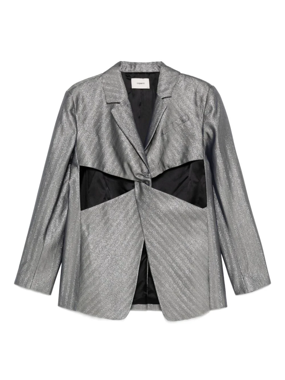 twisted cut-out tailored jacket Highlights - Grey - Cut-out detailing - Long sleeves - Buttoned cuffs Imported Composition Outer: Virgin Wool 57%, Viscose 39%, Metallized Polyester 4% Lining: Viscose 52%, Cupro 48%