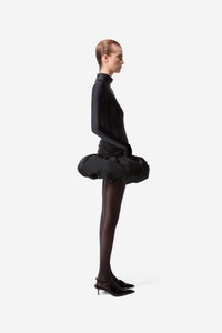 Coperni’s Fall 2024 collection draws inspiration from science fiction, alluding to space exploration and alien lifeforms. This ruched mini is a futuristic twist on a puff-hemmed bubble skirt with intricate folds and draping around a ring of thick fabric which hovers like a little UFO above the thighs Details Black COPJ65F3013 100% Polyester Made in Bulgaria Size and Fit Size and Fit