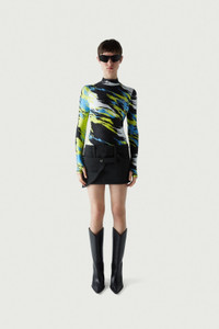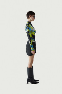 Versatile mini skirt with detachable and adaptable front flap. This hybrid miniskirt has a layered, wrap around look that's been imaginatively cut and assembled. It features a front curved overlay that can be detached or moved to alter the line of the silhouette. Details Black 49% Recycled Polyester, 34% Viscose, 15% Polyester, 2% Elastenek COPJ39111 Made in Bulgaria Size and Fit True to size.
