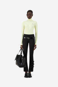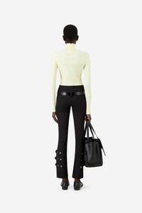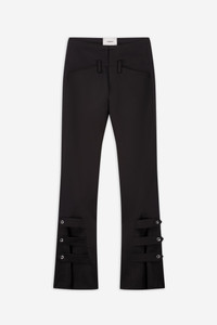 Tailored for structure and edge, these slim-fit trousers are made from recycled fibre. Their standout feature are wide, strapped cuffs punctuated with metallic eyelets - a detail that brings utilitarian energy to an otherwise clean silhouette. DETAILS - Composition: Recycled Polyester - Made in: Romania - Sku: COPP142F3004