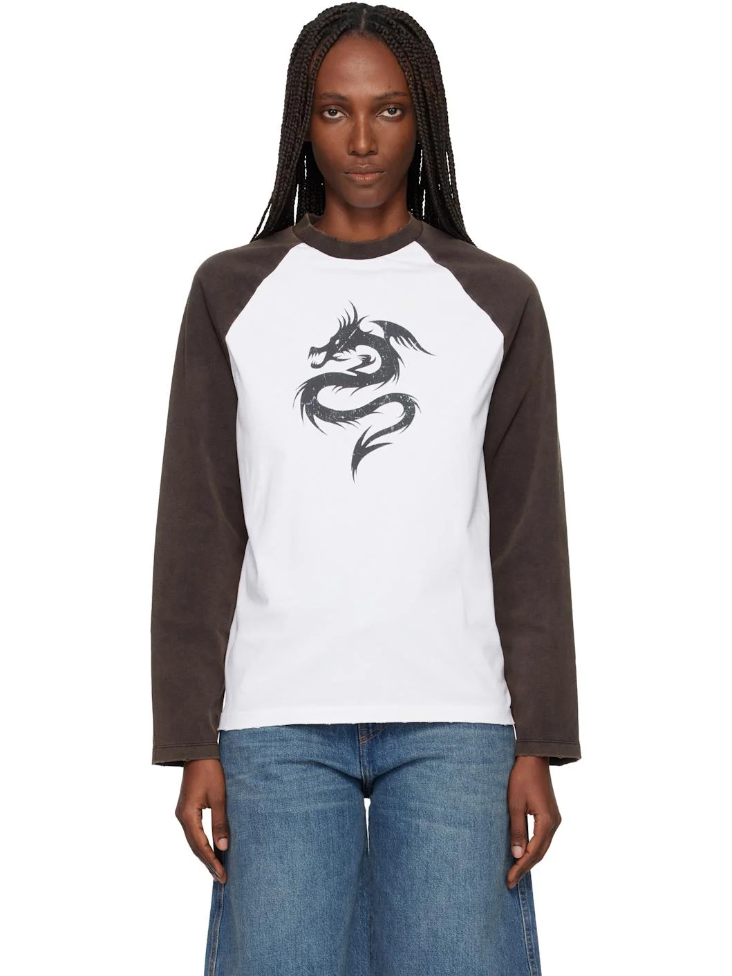 Cotton jersey T-shirt. · Fading and distressing throughout · Rib-knit crewneck · Graphic printed at chest · Raglan sleeves Supplier color: White/Black 100% cotton. Made in Portugal 252325F110019