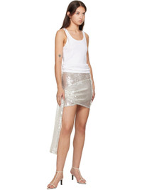 Sequinned sheer polyester-blend mesh miniskirt. · Draped and twisted construction · Elasticized waistband · Knotted accent and extended trim at hem · Concealed zip closure at side seam · Unlined Supplier color: White