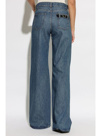 flared jeans Highlights - Indigo blue - Cotton - Washed denim - Contrast stitching - High-rise - Belt loops - Classic five pockets - Whiskering effect at the thighs - Full-length - Decorative buckle detail at the back - Wide leg - Concealed zip-fly and button fastening Imported Composition Viscose 52%, Cupro 48%