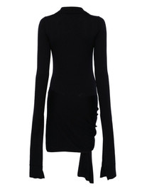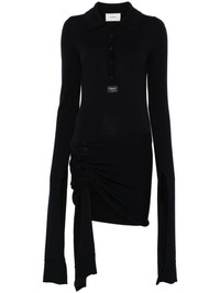extra-long sleeve mini dress Highlights - Midnight blue - Virgin wool - Knitted construction - Extra-long sleeves - Short front button fastening - Spread collar - Split cuffs - Logo patch to the front - Knot detailing - Sash detail - Asymmetric hem - Thigh-length Made in Italy Composition Virgin Wool 100%