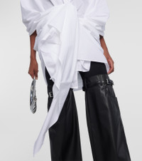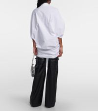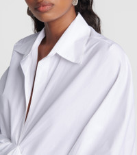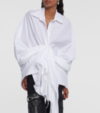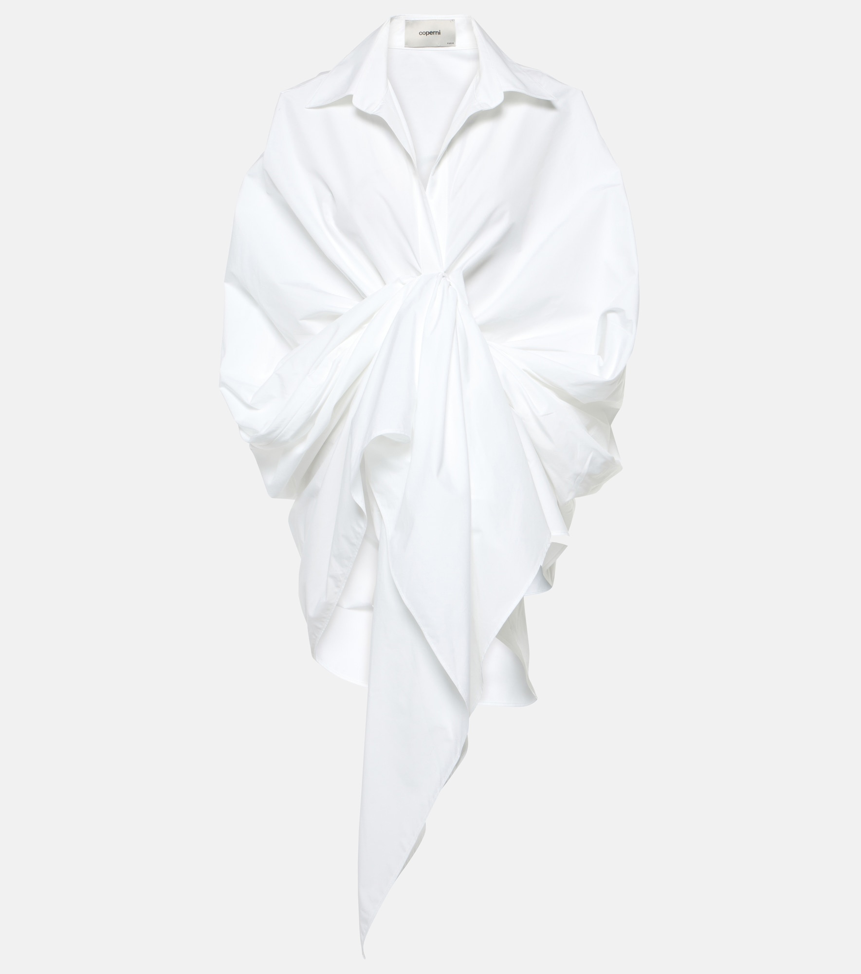 In Coperni's cotton wrap shirt, sophistication meets modernity. The design showcases a high-low hem, front draped panel, point collar, and concealed button front with three-quarter sleeves and a relaxed fit. Product Details - Material: 100% cotton - Care instructions: dry clean - Made in France - Designer color name: Optic White - Item number: P00862432 Size & Fit - True to size - Oversized - Mid-weight material - Falls below the hip - The model seen in the picture is 178cm-5'10" and wearing a size FR 36