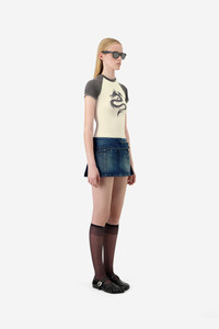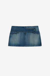 Minimalist in spirit and architectural in design, the Yoke Denim Skirt features a distinctive yoke waistband and paneled construction. Cut short with a straight fit, it is crafted in washed blue denim for a structured silhouette with modern attitude. DETAILS - Sku: COPJ109F2055