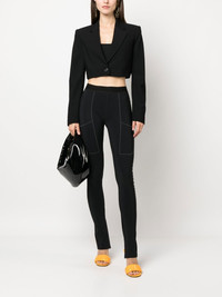 stretch-design slit leggings black stretch-design logo print to the rear skinny cut high-waisted panelled design side slits Made in Italy Composition Polyamide 73%, Elastane 27% SIZE & FIT Model measurements Height 5 ft 10 in(1.77 m) Bust/Chest 35.03 in(89 cm) Hips 35.03 in(89 cm) Waist 23.62 in(60 cm) Measurement FRONT RISE 9.01 in(22.9 cm) INSIDE LEG 34.01 in(86.4 cm) BACK RISE 10 in(25.4 cm) HIPS 30 in(76.2 cm) Hem Width 9.01 in(22.9 cm) WAIST 24.01 in(61 cm) FittingInformation This piece fits true to size. We recommend you get your regular size Cut for a close fit Made with a mid-weight stretch fabric