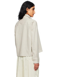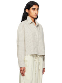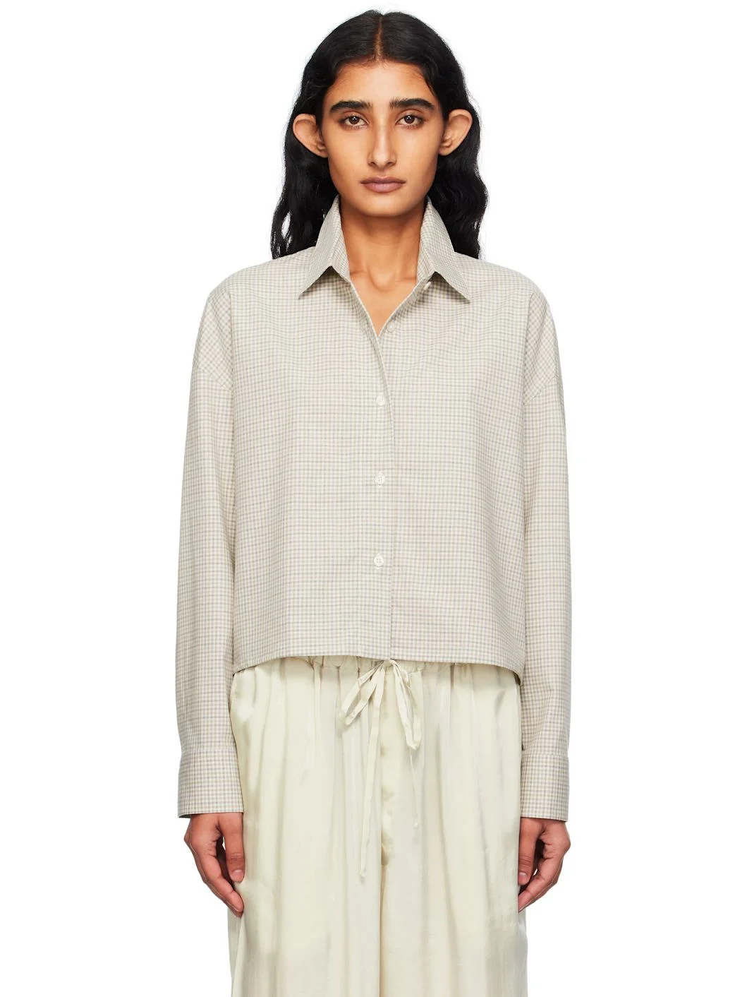 Cotton- and super fine llama-blend poplin shirt. · Certified BCI and OEKO-TEX® Standard 100 · Check pattern printed throughout · Spread collar · Button closure · Cropped droptail hem · Dropped shoulders · Buttoned barrel cuffs · Twin pleats at back yoke · Logo-engraved hardware Supplier color: Checked 95% cotton, 5% super fine llama. Made in Spain 251909F109003