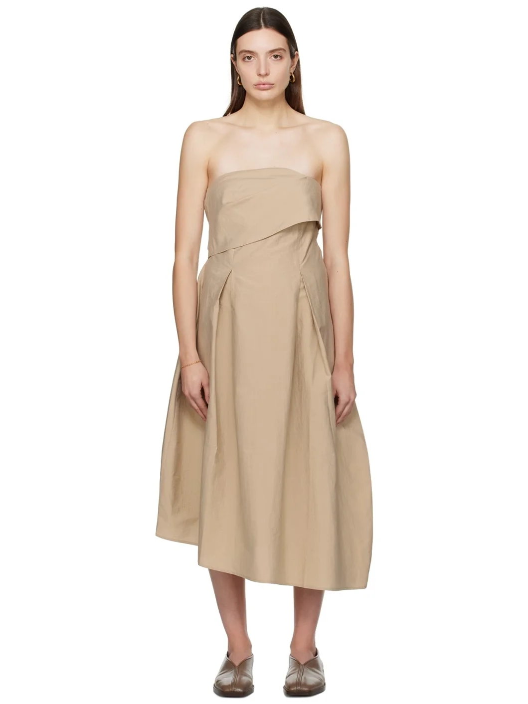 Cotton-and recycled nylon-blend poplin dress. · Paneled construction · Pleats at straight neck · Inverted box pleats at front waist · Self-tie fastenings at low back · Partially elasticized back Supplier color: Toasted 89% cotton, 11% recycled polyamide. Made in Spain 241909F054000