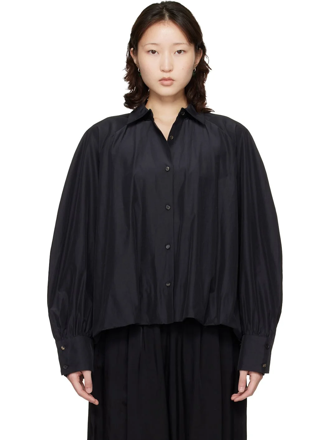 Cotton-blend taffeta shirt. · Spread collar · Button closure · Bubble hem · Raglan balloon sleeves · Barrel cuffs · Full viscose satin lining Supplier color: Black Body: 48% cotton, 52% polyester. Lining: 100% viscose. Made in Spain 261909F109001