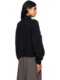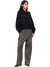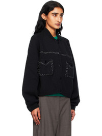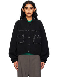 Knit merino wool cardigan. · Rib-knit stand collar, hem, and cuffs · Button closure · Patch pockets at chest · Topstitching in white at front · Cropped hem · Raglan sleeves Supplier color: Black 100% merino wool. Made in Spain 252909F095014