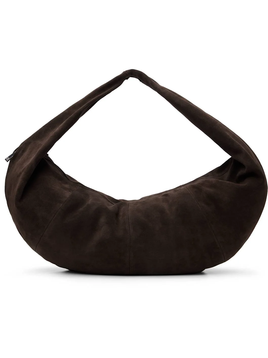 Calfskin suede shoulder bag. · Integrated shoulder strap · Zip pocket at side · Zip closure · Patch pocket at interior · Cotton twill lining · H12.5" x W27" x D7" · Total height: H19" Supplier color: Brown Calfskin. Made in Spain 261909F048004