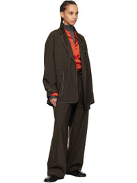 Plain-woven stretch polyester- and virgin wool-blend trousers. Pinstripes throughout. - OEKO-TEX® STANDARD 100-certified - Relaxed-fit and straight-leg - Drawstring at elasticized waistband - Three-pocket styling - Contrast stitching in white and red Supplier color: Shade