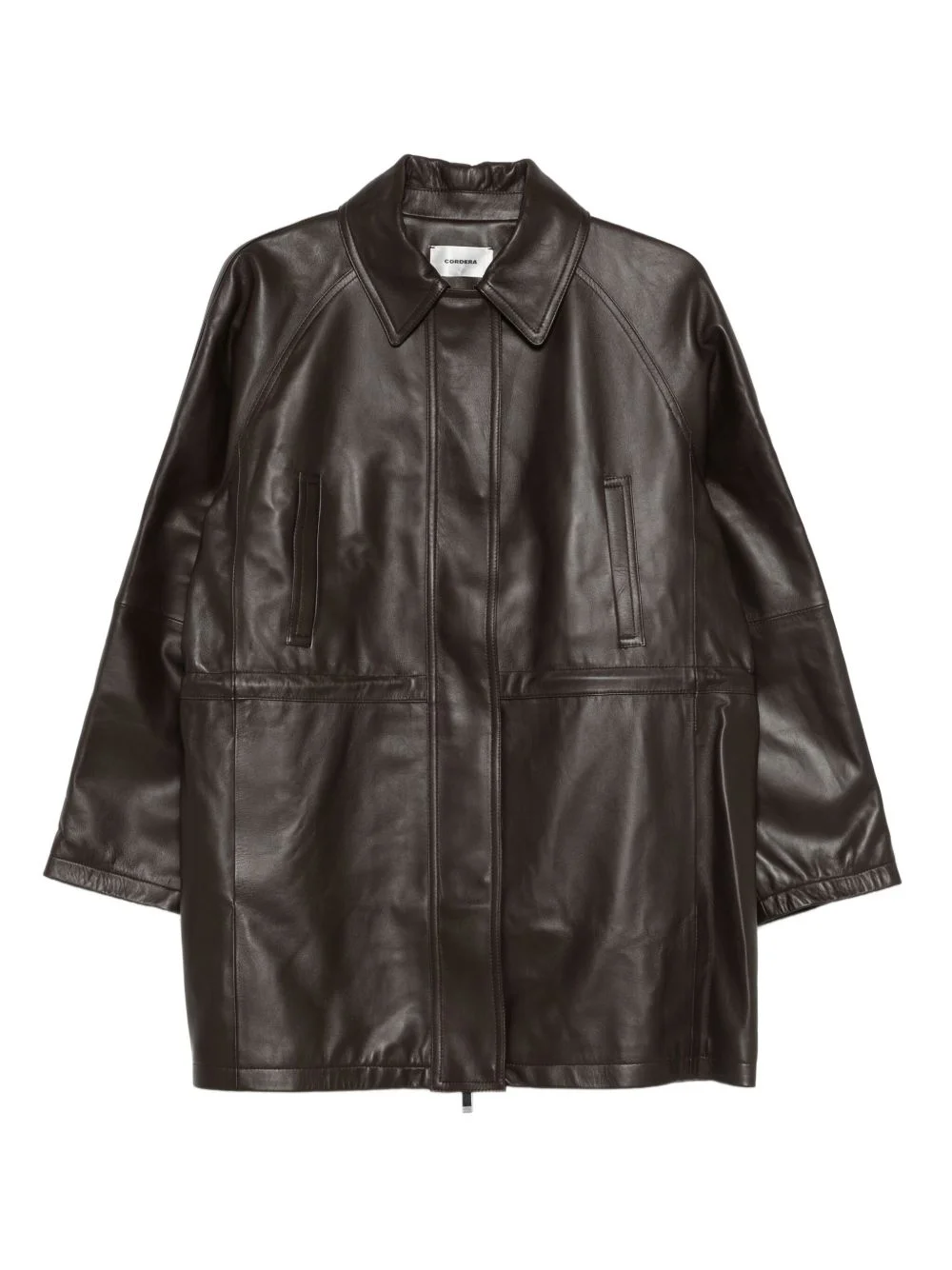 collared leather coat