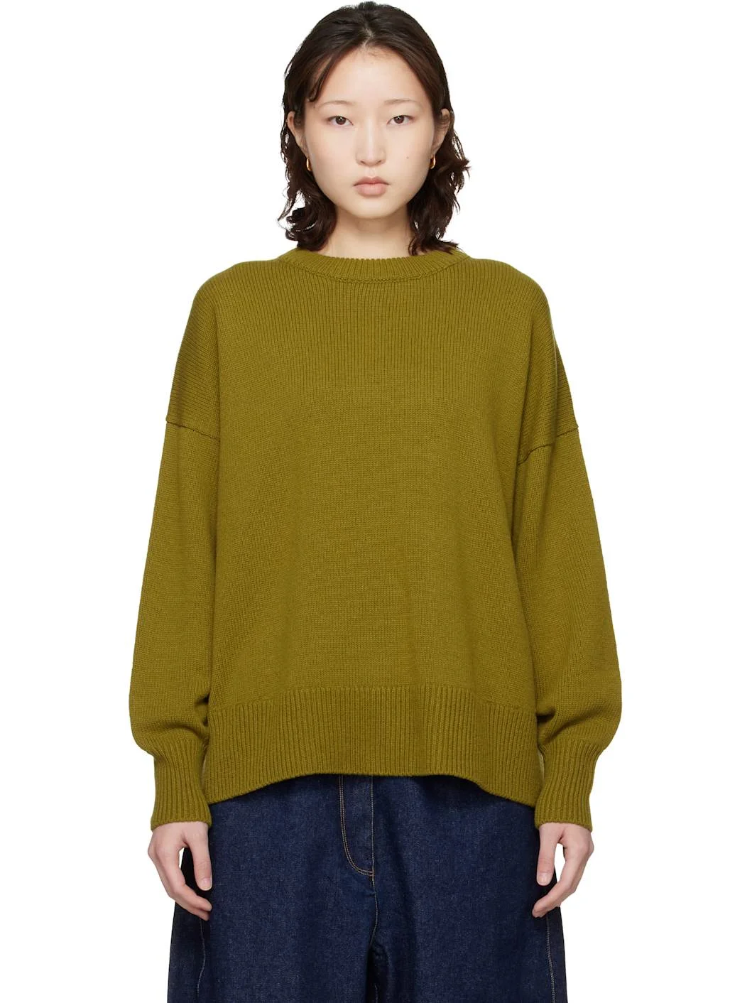 Lightweight knit ultrafine merino wool sweater. · Oversized · Rib-knit crewneck, hem, and cuffs · Dropped shoulders Supplier color: Woodbine 100% ultrafine merino wool. Made in Spain 261909F096002