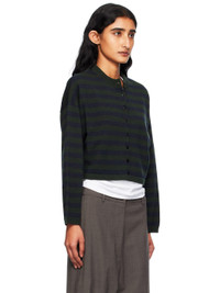 Knit merino wool cardigan. · Striped throughout · Rib-knit crewneck, hem, and cuffs · Button closure · Cropped hem · Dropped shoulders · Logo-engraved hardware Supplier color: Striped green 100% merino wool. Made in Spain 252909F095013