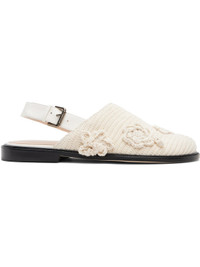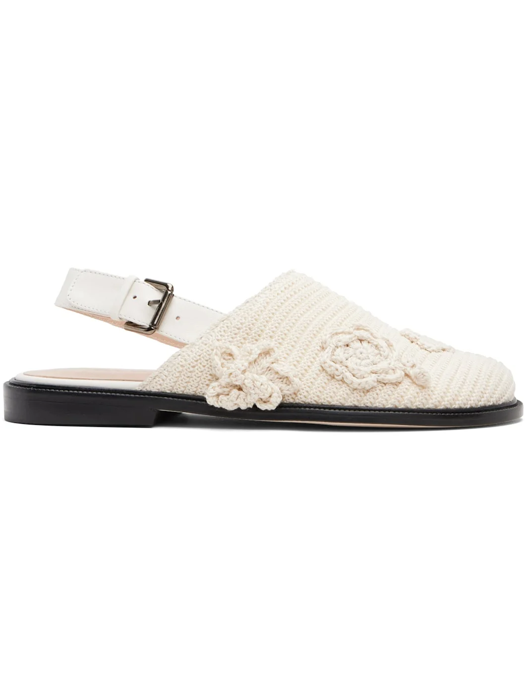 Grained calfskin loafers. · Hand-crocheted cotton and floral appliques at vamp · Pin-buckle slingback strap · Stacked leather midsole · Leather sole with rubber injection Supplier color: Natural Upper: calfskin, cotton. Sole: leather, rubber. Made in Spain 251909F121006