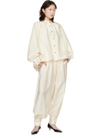 Semi-sheer woven lyocell-blend trousers. · Loose-fit, tapered · Low-rise · Elasticized waistband · Two-pocket styling · Gathering and button fastening at cuffs Supplier color: Marfil 80% lyocell, 20% polyamide. Made in Spain 261909F087011