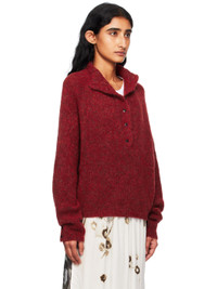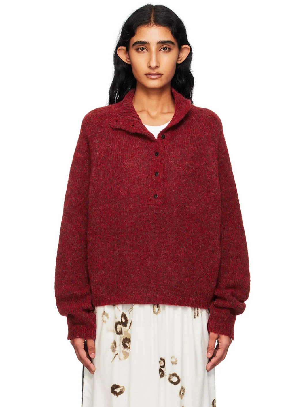 Brushed knit baby alpaca-blend sweater. · Rib-knit mock neck, hem, and cuffs · Six-button placket · Raglan sleeves · Button vent at cuffs · Logo-engraved hardware Supplier color: Dahlia 70% baby alpaca, 30% nylon. Made in Spain 252909F099001