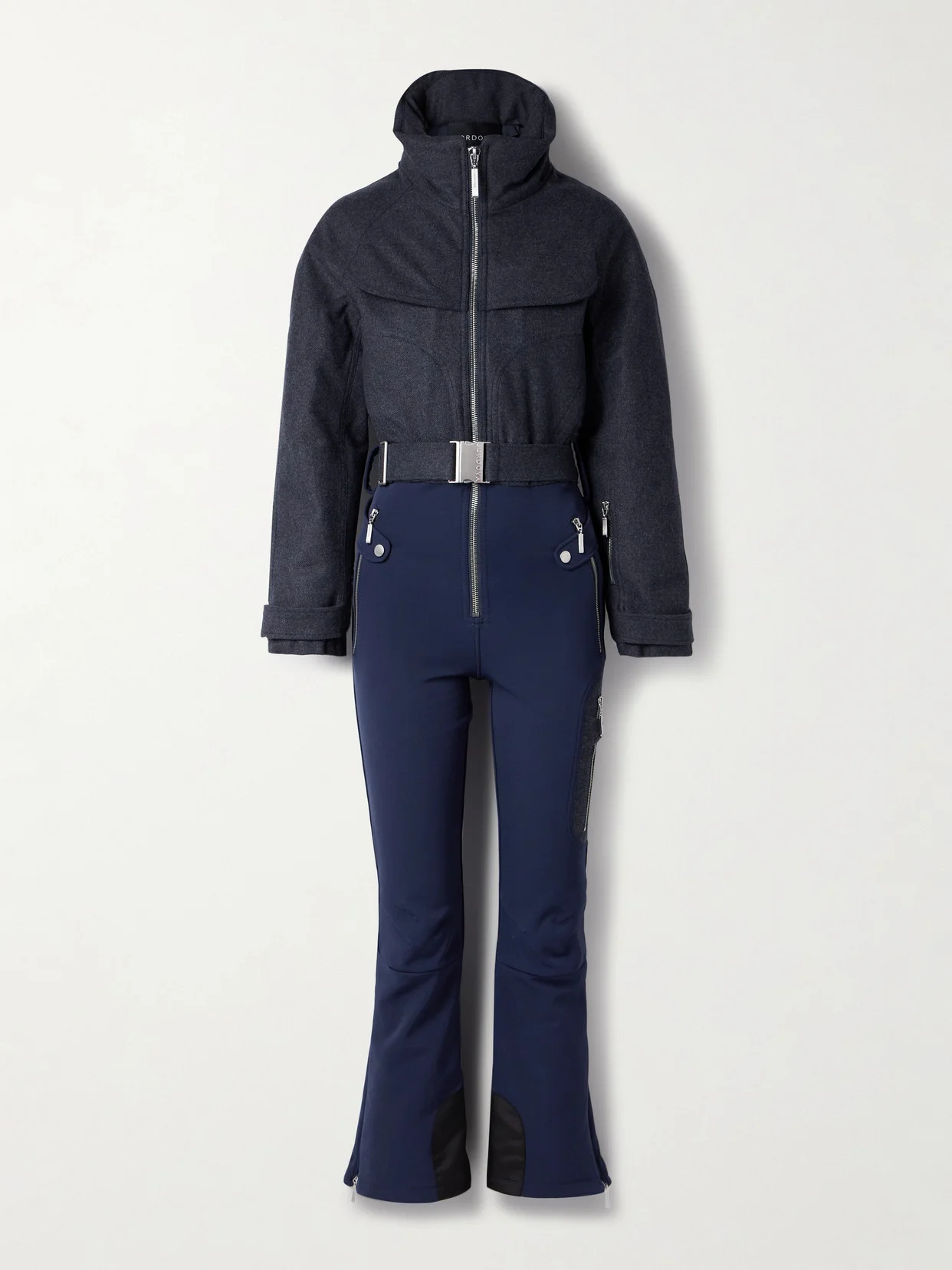 Cordova's 'Eiger' ski suit will keep you warm and dry as you take on the slopes. It's made from a combination of wool-blend and twill and comes with a wide waist belt. Adjust the zippers on the cuffs to easily take your boots on and off.