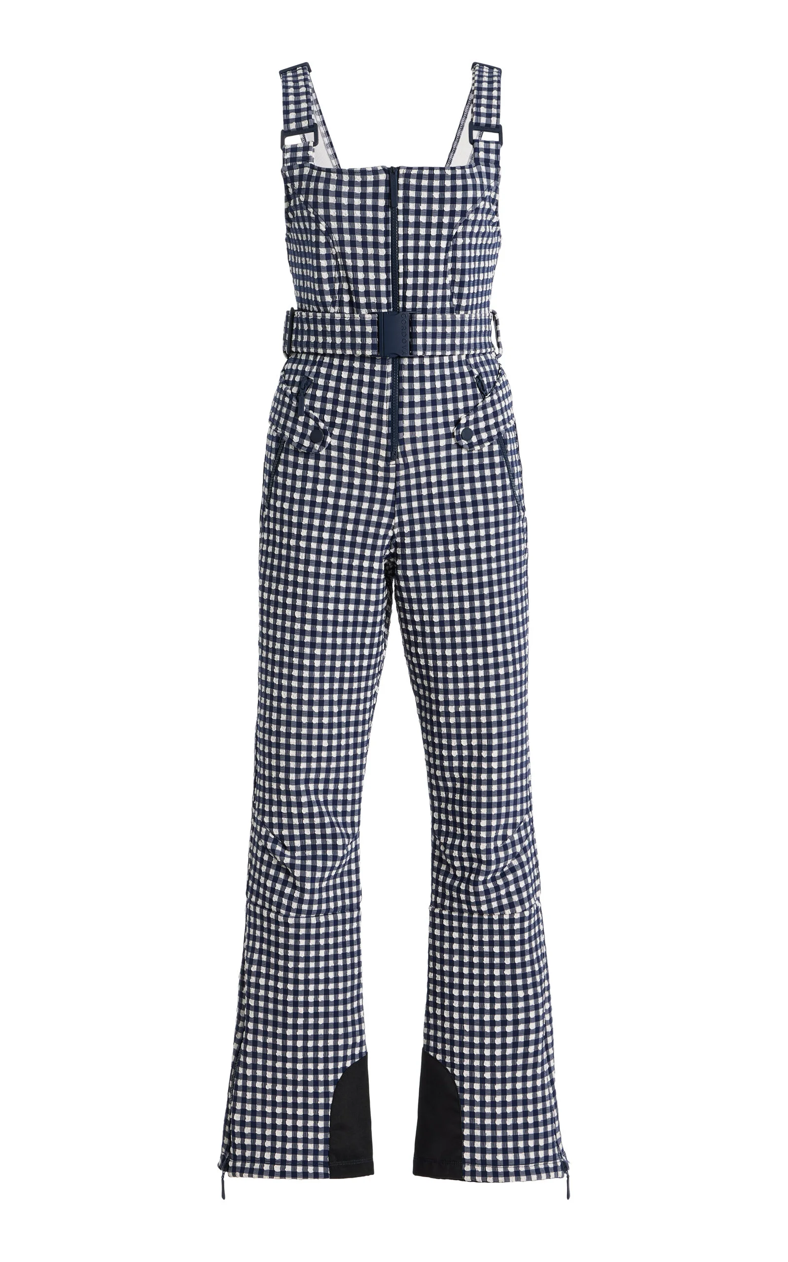 Cordova is renowned for its 70s-inspired skisuits that fuse fashion and function. The Fernie ski bib combines high-performance function with elevated design details for a sleek, fashion-forward look. Made from luxurious 4-way stretch waterproof fabric, it offers exceptional comfort, mobility, and protection on the slopes. PRODUCT DETAILS - Suitable for sporting conditions - Zip fastening - Composition: 76% polyester, 15% polyamide, 9% elastane; Lining: 100% polyester - Designer color: Indigo Gingham - Machine wash - Made in Portugal