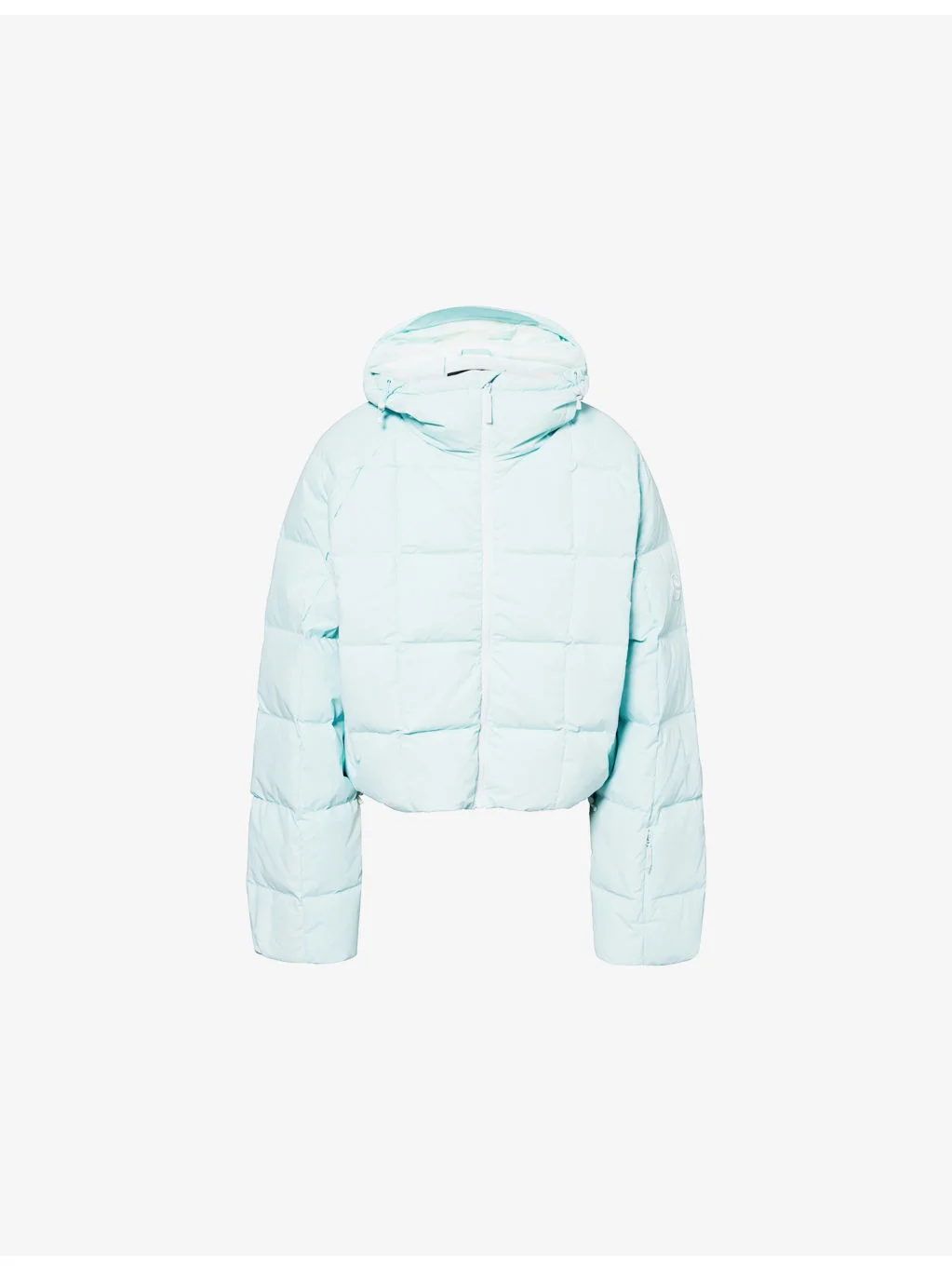 PRODUCT DETAILS - Cordova shell-down jacket - 100% polyamide; filling 90% duck down, 10% feathers; lining 100% polyamide - Exposed zip fastening at front - Regular fit, cropped, high-neck, drawstring hood, raglan long sleeves, zip pocket at sleeve, elasticated cuffs, contrast internal elasticated cuffs, two zip pockets and brand embroidery at front, all-over quilted and padded, fully lined, drawstring elasticated hem - Machine wash cold - True to size - Size small: length 21in / 54cm - Model is 5ft 10in/1.78m and wears a size small - Midweight, non-stretch Ref: R04528543