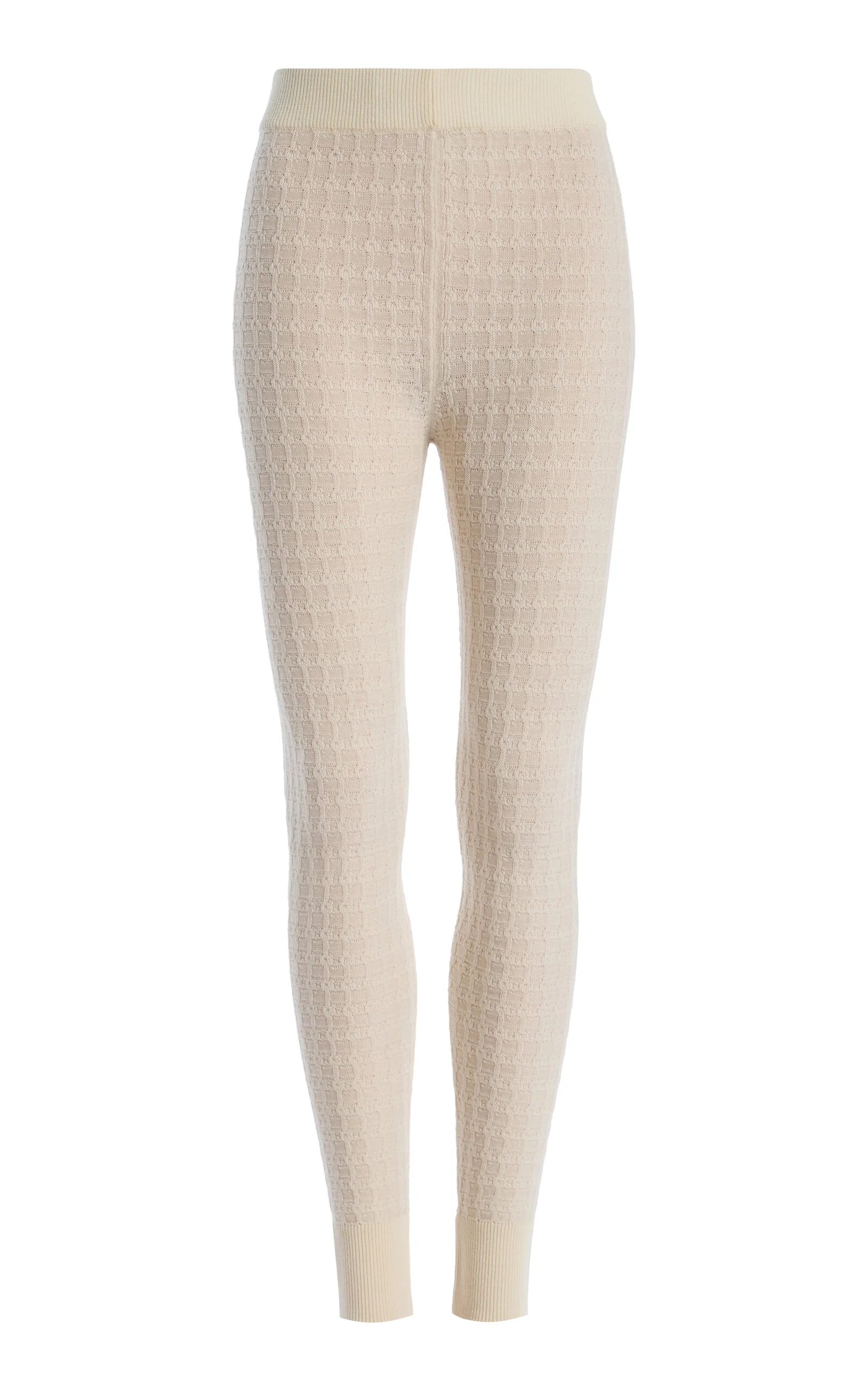 Soleil Cable-Knit Merino Wool Leggings ivory