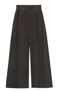 PRODUCT DETAILS - Relaxed fit, elastic waistband, wide legs, draped detailing - Pull on - Unlined - Composition: 100% Viscose - Color: plaid - Dry clean only - Pre Fall '25