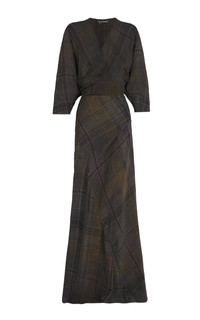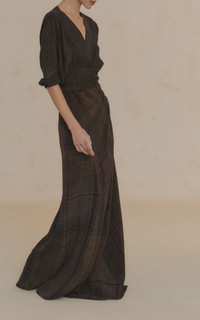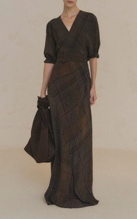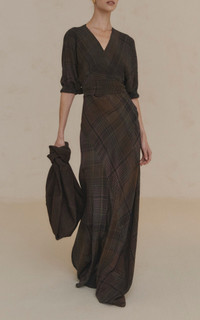 PRODUCT DETAILS - Relaxed fit, v-neck, three-quarter sleeves, floor length - Wrap - Unlined - Composition: 100% Viscose - Color: plaid - Dry clean only - Pre Fall '25