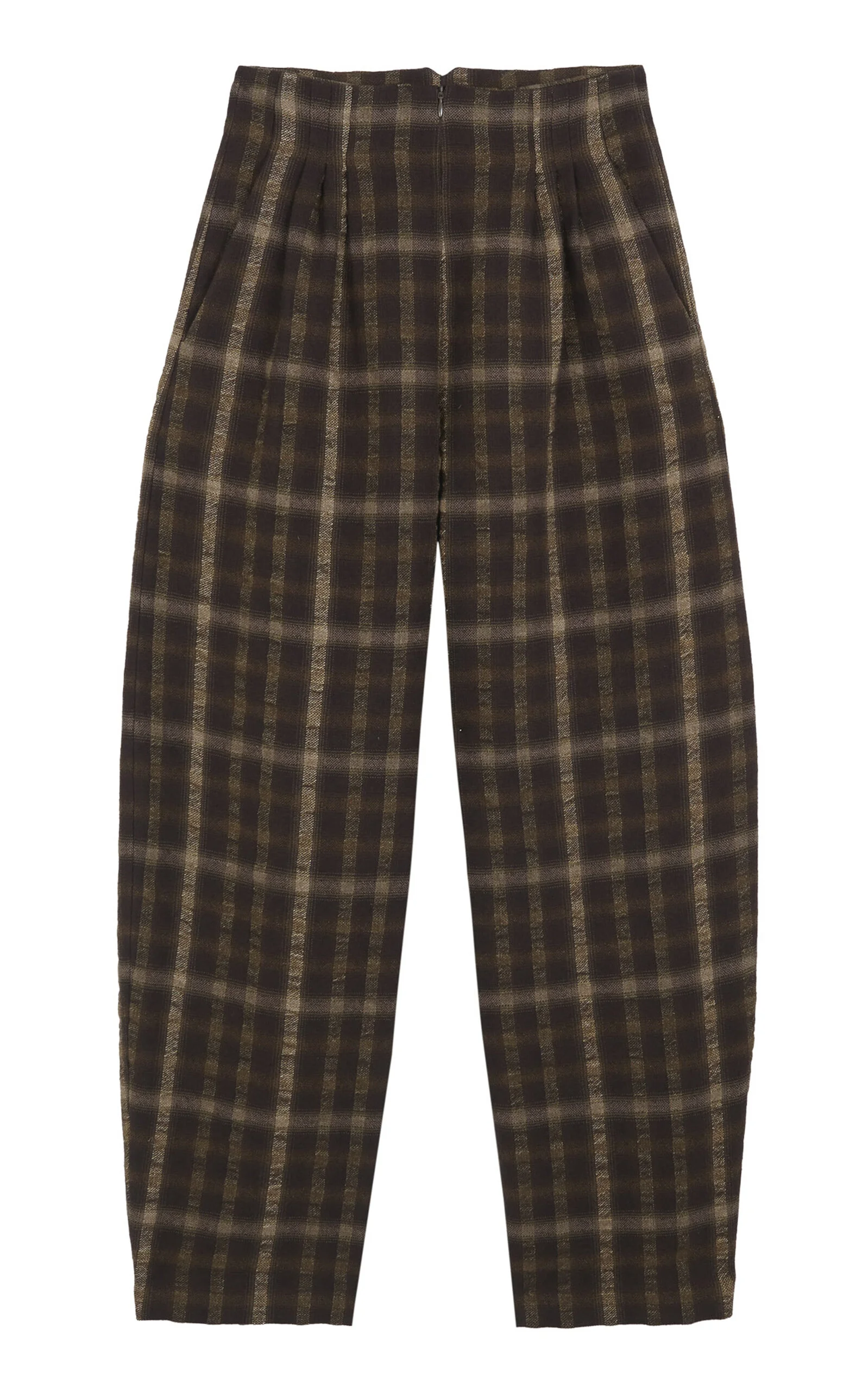PRODUCT DETAILS - Relaxed fit, jacquard checks pattern, wide legs - Button and concealed zip fastening at front - Composition: 58% wool 42% linen - Color: print - Dry clean - Fall/Winter 2025