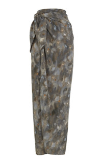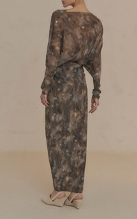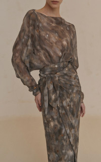 PRODUCT DETAILS - Regular fit, wrap detailing, ruching at waist, maxi hem - Wrap - Unlined - Composition: 100% Silk - Color: print - Dry clean only - Pre Fall '25