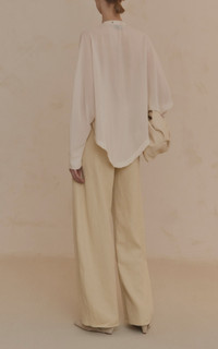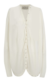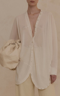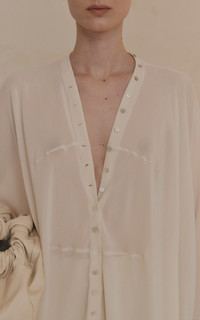 PRODUCT DETAILS - Relaxed fit, long sleeves, sheer fabrication, button detailing - Button fastening - Unlined - Composition: 100% Silk - Color: ivory - Dry clean only - Pre Fall '25