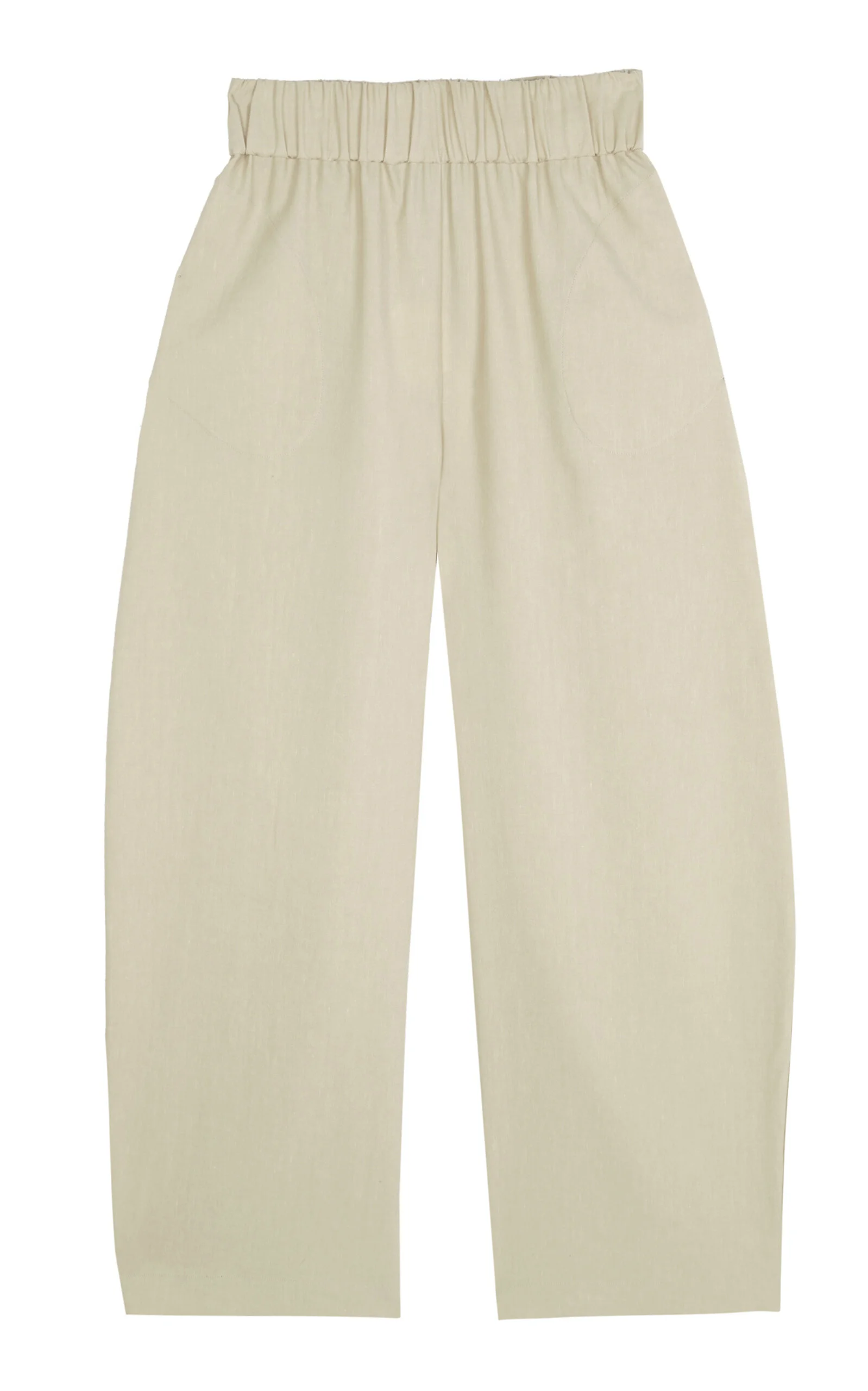 PRODUCT DETAILS - Relaxed fit, elastic waistband, wide legs - Pull on - Unlined - Composition: 52% Linen 48% Virgin Wool - Color: neutral - Hand wash only - Pre Fall '25