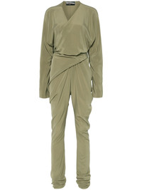 Serp jumpsuit Highlights - Olive green - Tied waist - V-neck - Long sleeves - Draped design Imported Composition Silk 94%, Lycra 6% SIZE & FIT Model measurements Height 5 ft 10 in(1.78 m) Bust/Chest 31.49 in(80 cm) Hips 37 in(94 cm) Waist 23.62 in(60 cm) FittingInformation The tie fastening gives an adaptable and personalised fit Made from a lightweight stretch fabric, this piece offers elasticity and flexibility when worn