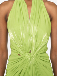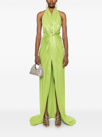 Colette gown Highlights - Neon green - Concealed rear hook and zip fastening - Plunging v-neck - Halterneck - Gathered detailing Imported Composition Polyester 100% SIZE & FIT Model measurements Height 5 ft 11 in(1.8 m) Bust/Chest 31.49 in(80 cm) Hips 36.61 in(93 cm) Waist 24.4 in(62 cm) FittingInformation Designed for a slim fit that sits just away from the body offering a close yet comfortable fit Particularly long in length; consider your own measurements Made from a midweight non-stretch fabric