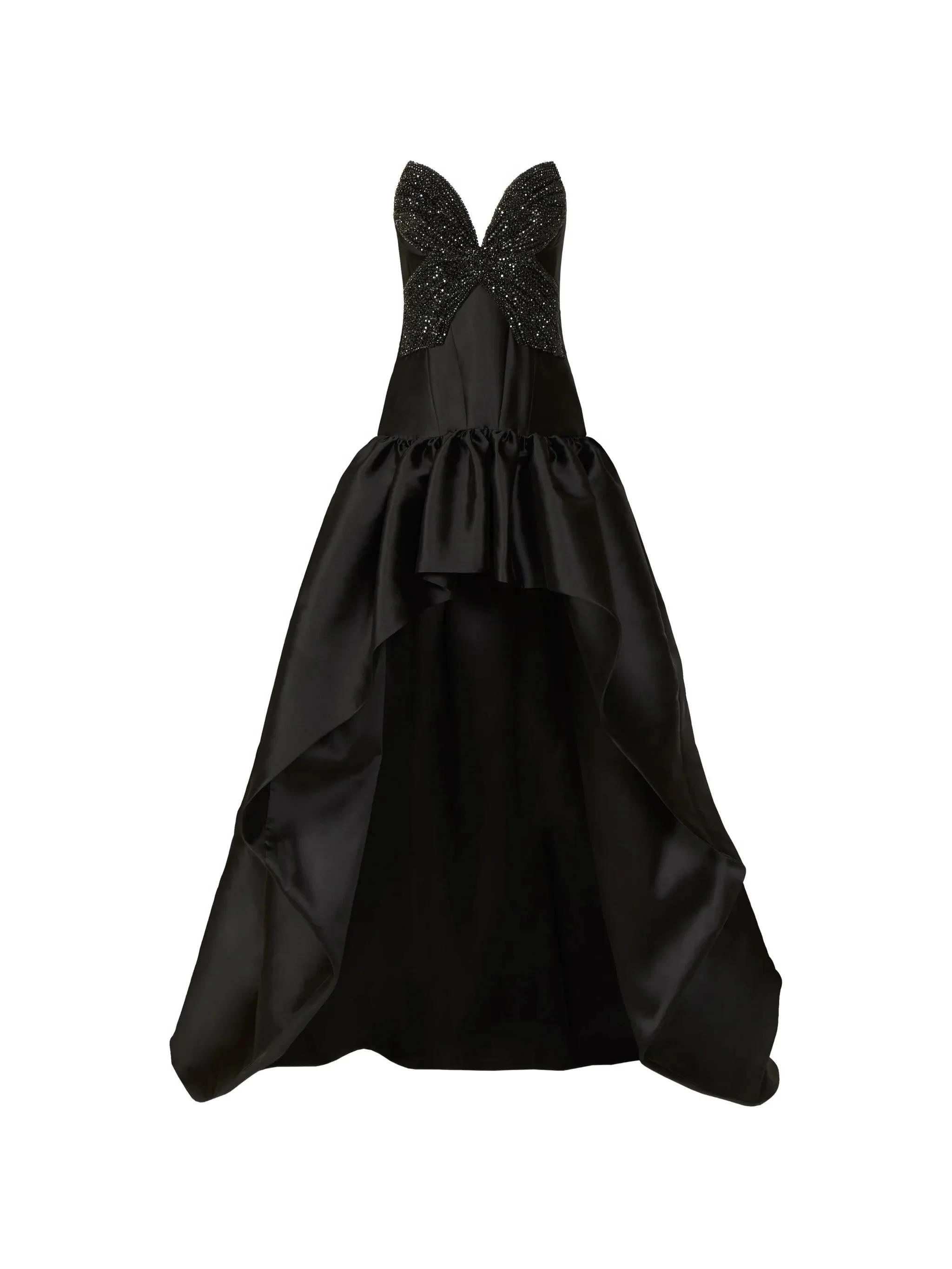 black crystal applique strapless high-low hem - Color: BLACK - Made in: Greece - Designer Style ID: PS2671 MIKADO BLACK Composition and care Silk: 15.0%, Polyester: 85.0%