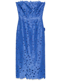 Delmara 3D-Appliqued Satin-Lace Strapless Midi Dress blue