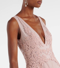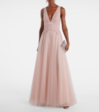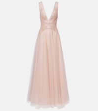Floral-appliqué tulle gown
