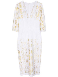 foil-print V-neck linen dress Highlights - White - Cotton/linen - Lace detailing - Foil print - Plunging v-neck - Concealed rear zip fastening - Three-quarter length sleeves - Straight hem Imported Composition Body: Linen/Flax 100% Lining: Cotton 100%