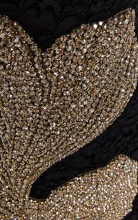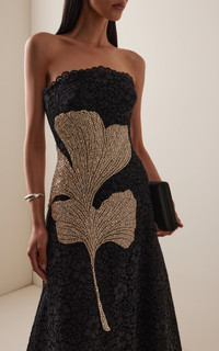 Founded in 1998 by German-born Greek designer Christos Costarellos. The brand is redefining evening-wear for the modern day by creating expertly crafted modern luxury garments using the principles of haute couture. The 'Hallis' has a tea-length silhouette made from floral-embroidered lace with a crystal-encrusted leaf. PRODUCT DETAILS - Pre-Fall '25 - Zip fastening - Composition: 46% viscose, 39% cotton, 15% nylon; Lining: 65% polyester, 35% polyeamide - Dry clean - Made in Greece