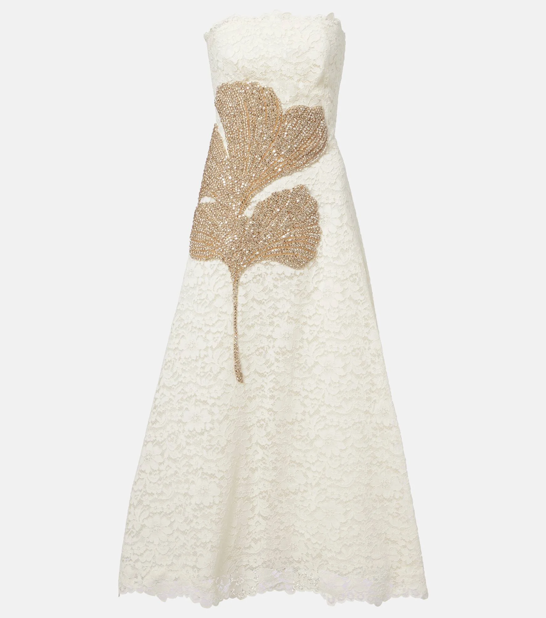 Based in Athens, Costarellos designs ethereal eveningwear that takes inspiration from art of ancient Greece. Designed to turn heads, the Hallis cocktail dress is made from white lace with delicate embellishments, a strapless neckline, and an A-line silhouette. Product Details - Material: 46% viscose, 39% cotton, 15% nylon - Care instructions: dry clean - Made in Italy - Designer color name: Ecru - Item color: beige - Lining: 65% polyester, 35% polyamide - Closure: zipped back - Boning - Fully lined - Item number: P01058552 Size & Fit - True to size - Strapless - Internal boned corset for support - Non-stretchy fabric - The model seen in the picture is 178cm-5'10" and wearing a size FR 36